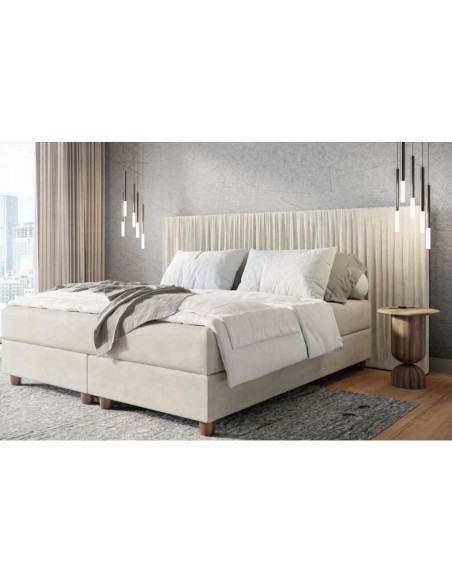 Основание кровати представляет собой массивную конструкцию без каркаса, которая визуально выглядит более легкой и минималистичной. Комфорт обеспечивают пружины Bonell и матрас из пеноматериала T-25 высотой 20 см, обеспечивающие оптимальную поддержку и комфортный сон. Ножки высотой 10 см приподнимают конструкцию, создавая впечатление устойчивости и современности. Многослойная конструкция высотой 50 см обеспечивает эргономичный уровень спального места и функциональность
