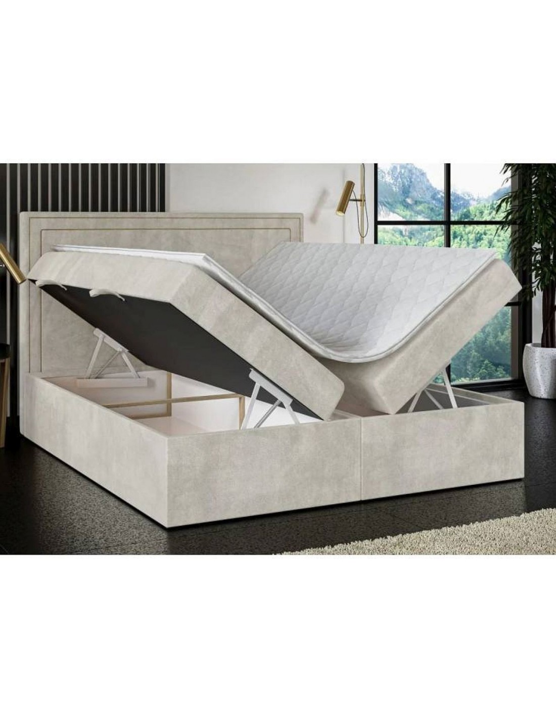 QUARTO — стильная кровать с декоративными линиями в изголовье, доступно в серебристом, золотом или античном золоте. Эта деталь придает мебели изысканный характер и позволяет адаптировать ее к различным интерьерам. Удобная поддержка из пеноматериала толщиной 3 см обеспечивает комфорт при откидывании назад, а два вместительных бельевых ящика, встроенных в основание, — практичное решение для хранения важных вещей или постельного белья.