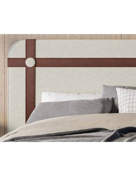 Кровать KROS с закругленным изголовьем, деталями из экокожи и деревянным основанием — элегантность, комфорт и современный дизайн без лишних деталей.