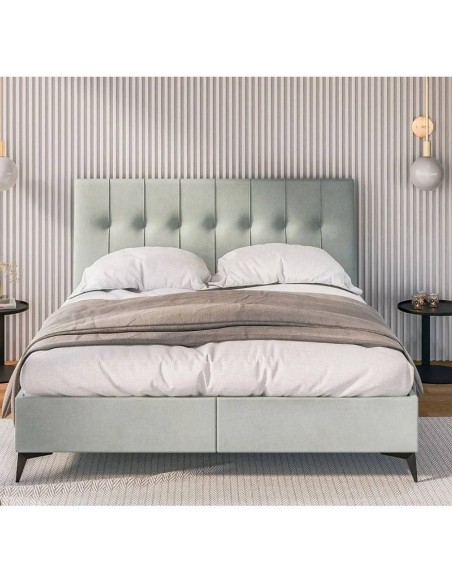 Кровать LINE — это элегантная и современная модель с вертикальными швами и едва заметными углублениями в изголовье, что придает интерьеру неповторимый вид. Удобный матрас с дополнительным наматрасником обеспечивает комфорт, а прочное белое основание и металлические ножки придают кровати современный вид. Это отличный выбор для тех, кто ищет стиль, комфорт и функциональность в одном предмете мебели.