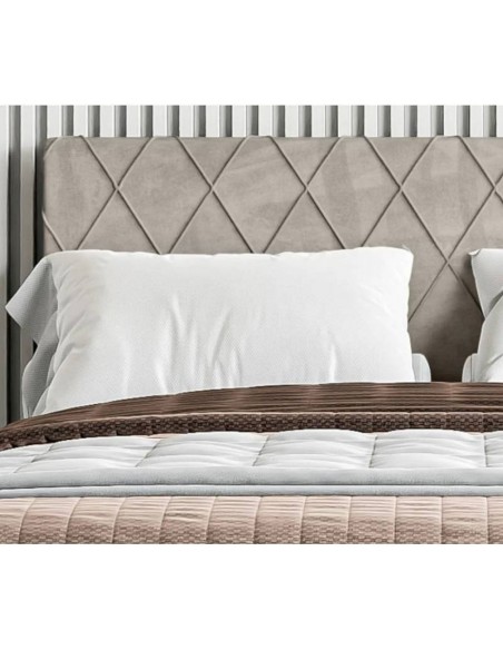 Кровать MILO с изголовьем с ромбовидным узором, металлическими ножками и ящиками для белья — современный стиль и комфорт в одном изделии.