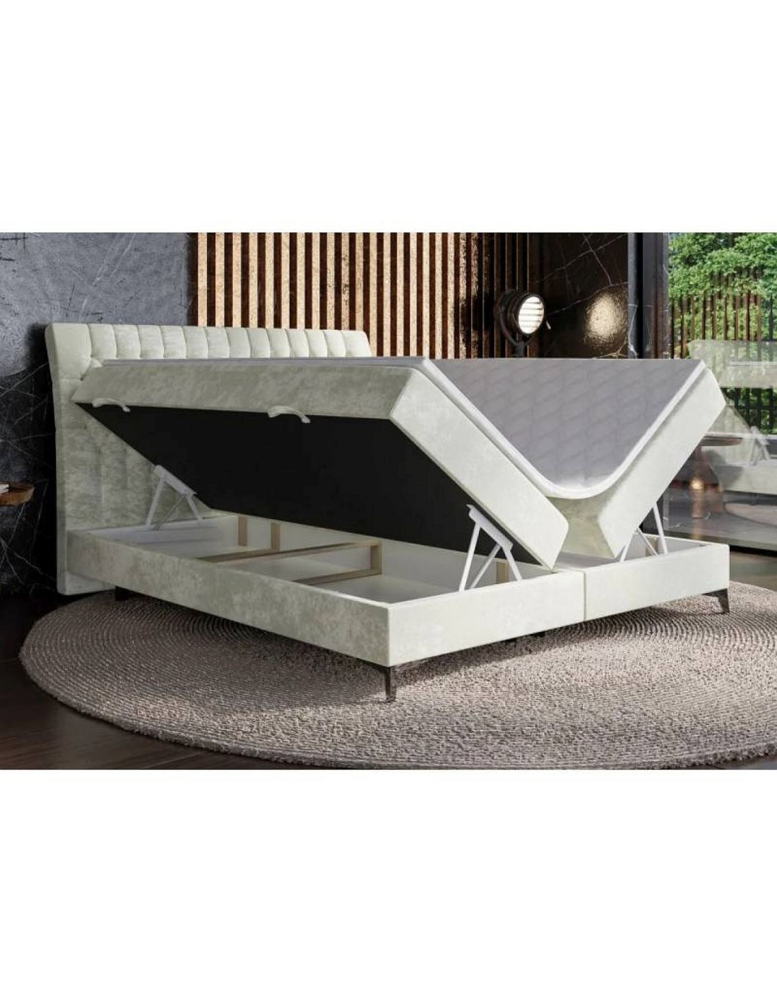 Кровать MOLLY отличается эксклюзивным дизайном: слегка наклоненное назад изголовье украшено стеганой отделкой, создающей элегантный визуальный эффект. Единое белое основание придает мебели легкость и современный характер, а матовые черные или хромированные металлические ножки добавляют современный акцент. Удобный матрас с дополнительным наматрасником обеспечивает комфорт, а многослойная конструкция позволяет подобрать идеальную высоту и насладиться комфортным отдыхом. MOLLY – отличный выбор для тех, кто ценит современный стиль, элегантность и удобство.