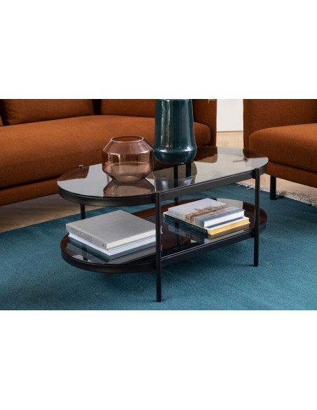 Этот журнальный столик выделяется своим современным минималистичным дизайном и изящной стеклянной поверхностью. Закалённое дымчатое стекло выглядит роскошно, прочно и легко моется. Чёрный стальной каркас с матовым порошковым покрытием обеспечивает устойчивость и долговечность, придавая конструкции современный характер. Благодаря своим размерам столик удобно разместится в гостиной — он станет отличным местом для напитков, закусок или декоративных аксессуаров. Элегантный внешний вид позволяет легко вписать этот предмет мебели в современный или индустриальный интерьер.