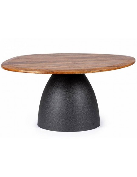 Журнальный столик STANLEY с неровной столешницей из мангового дерева и черным стальным основанием — это естественный и современный акцент.