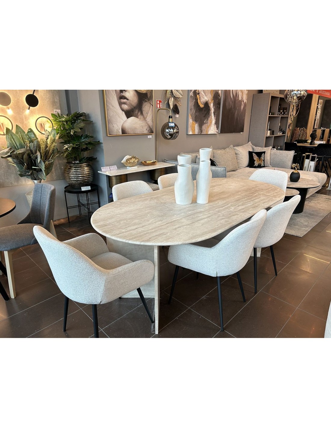 Izgatavots pēc Accanto grupas pasūtījuma (LU)Стол CALISTO – предмет мебели для столовой с особым дизайном. Овальная столешница изготовлена из натурального камня – травертина, что придаёт ему современный и неповторимый вид.