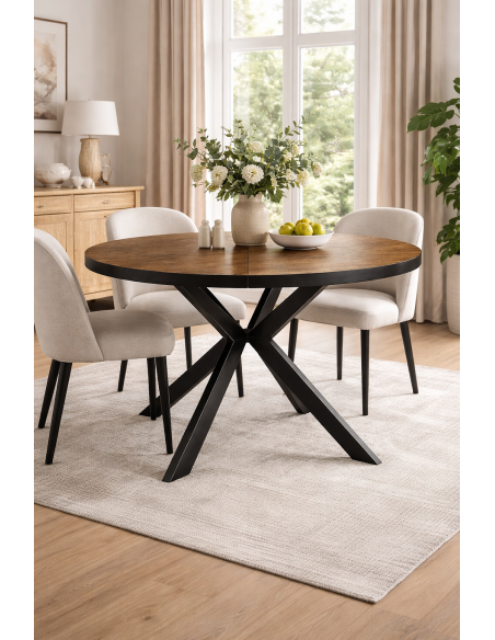 Круглый раздвижной стол EDEN со столешницей из ламината. Ножки металлические, окрашены порошковой краской.