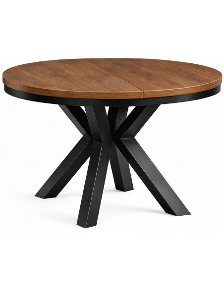 Круглый раздвижной стол VIGUS со столешницей из ламината и металлической окантовкой. Ножки изготовлены из черного металла с порошковым покрытием.