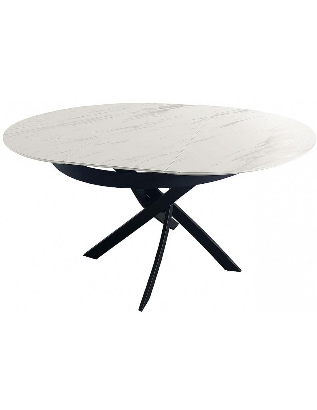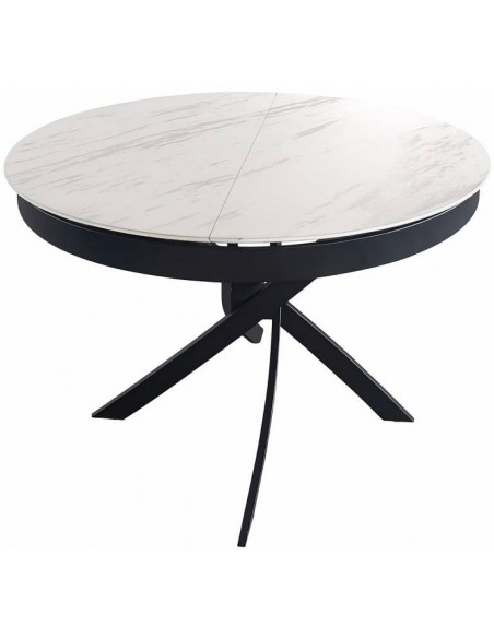 Круглый раздвижной стол FREGO с бело-коричневой керамической столешницей и черными ножками — современный, элегантный и функциональный стол.