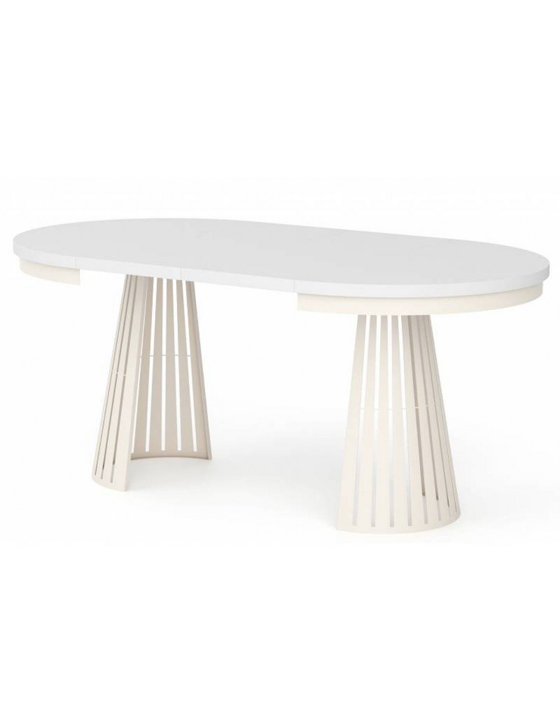 Izgatavots pēc Accanto grupas pasūtījuma (EG)Раздвижной обеденный стол NORE с современным ажурным основанием и круглой ламинированной столешницей. Эстетика, функциональность и элегантность в одном.