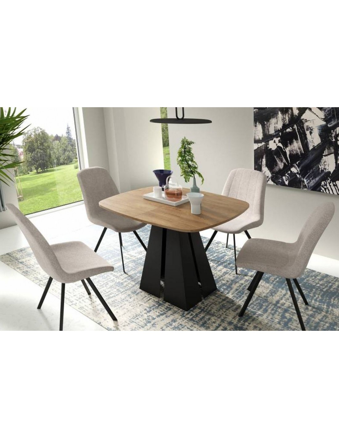 Izgatavots pēc Accanto grupas pasūtījuma (EG)Обеденный стол OGI — современный и элегантный предмет мебели, выделяющийся металлическими ножками с геометрическим узором. Это не только функциональный стол, но и стильный акцент интерьера.