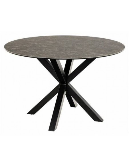 Стол TERRY — круглый обеденный стол с черной керамической столешницей FAIRBANKS и металлическими ножками, диаметр 119 x 75,5 см.
