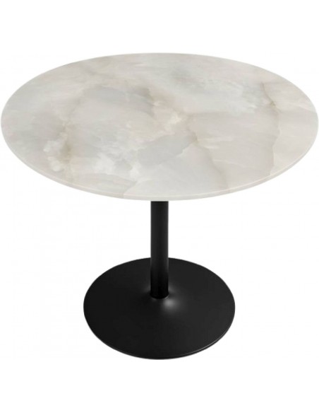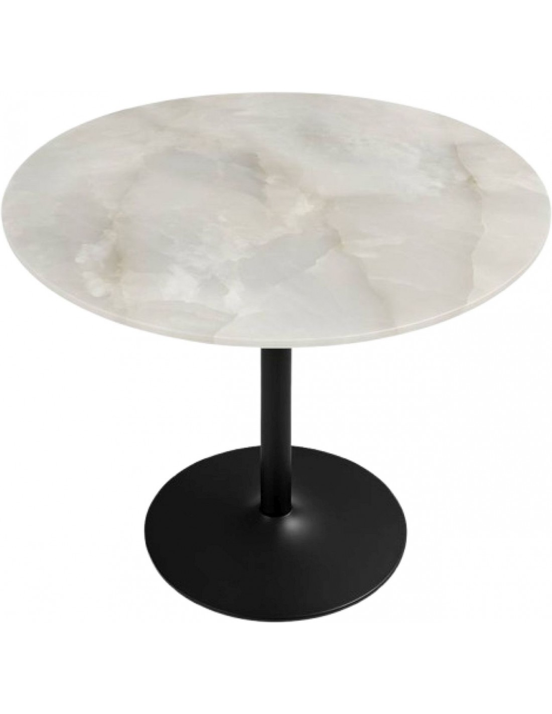 Круглый стол BARI диаметром 90 x 75 см со столешницей из турецкой белой керамики и чёрными ножками — элегантное и современное решение.