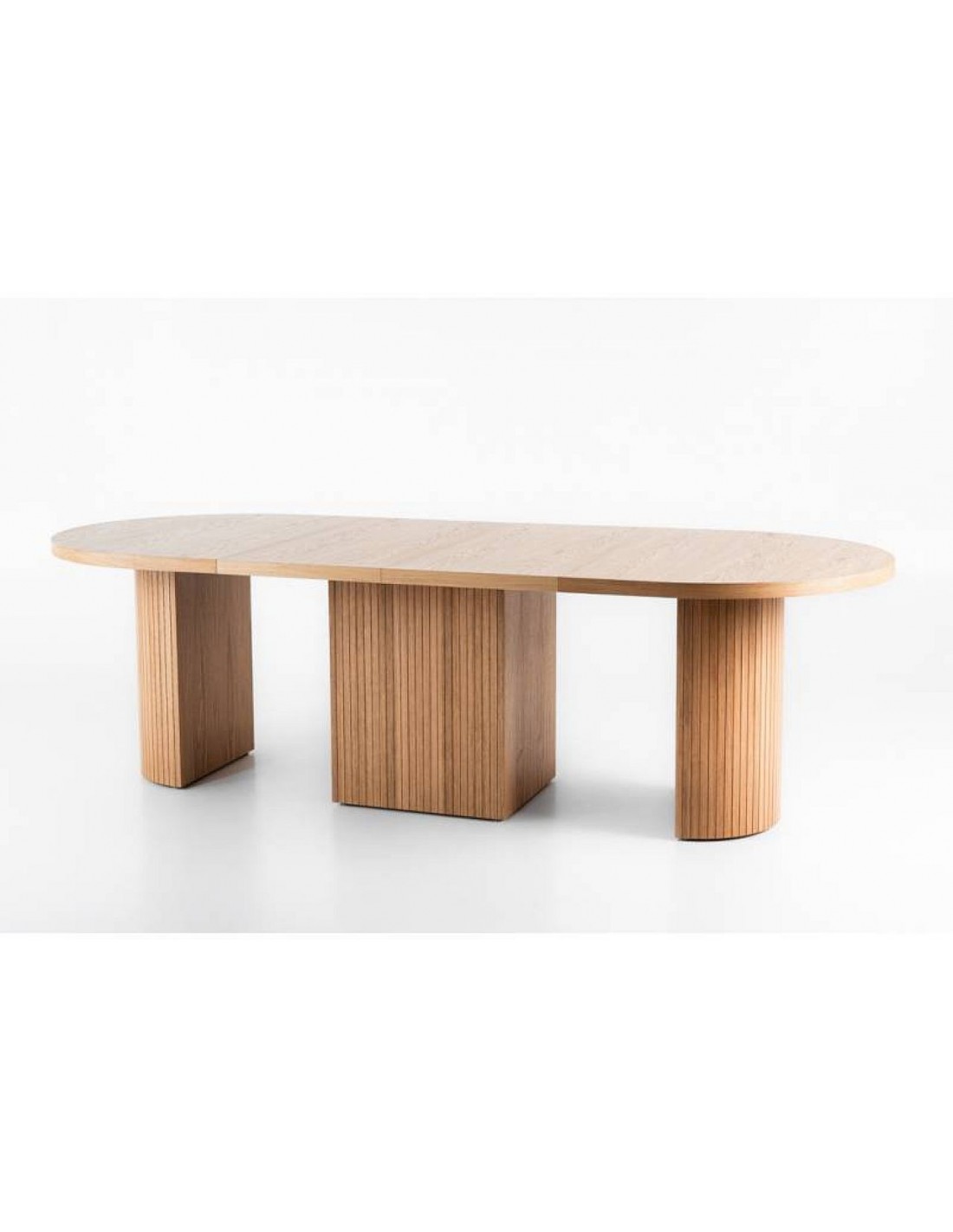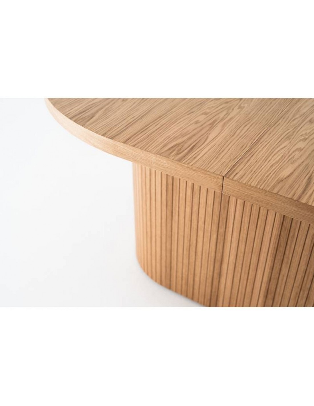 BUSSON — это уникальный овальный обеденный стол, созданный для сочетания элегантности, функциональности и современной эстетики. Столешница из дубового шпона толщиной 4 см имеет естественную текстуру дерева, что придает интерьеру ощущение уюта, тепла и непреходящей классики. Благодаря выдвижному механизму стол легко трансформируется из обычного обеденного стола в стол для вечеринок, что делает его отличным выбором как для повседневной семейной жизни, так и для больших компаний.