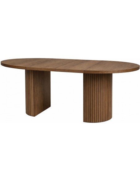 BUSSON — это современный и функциональный круглый обеденный стол из высококачественного дубового шпона, который подчеркивает естественную текстуру дерева и придает интерьеру теплоту и уникальность. Компактный стол легко раздвигается на +80 см, что делает его идеальным как для повседневного использования, так и для больших компаний или торжеств.