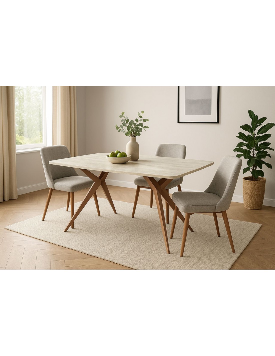 AMIS - современный обеденный стол, сочетающий в себе эстетику и практичность. Начальной длины достаточно для повседневного использования, а при необходимости стол можно легко раздвинуть на 78 см, поэтому за ним с комфортом разместится больше людей на торжествах или ужинах.