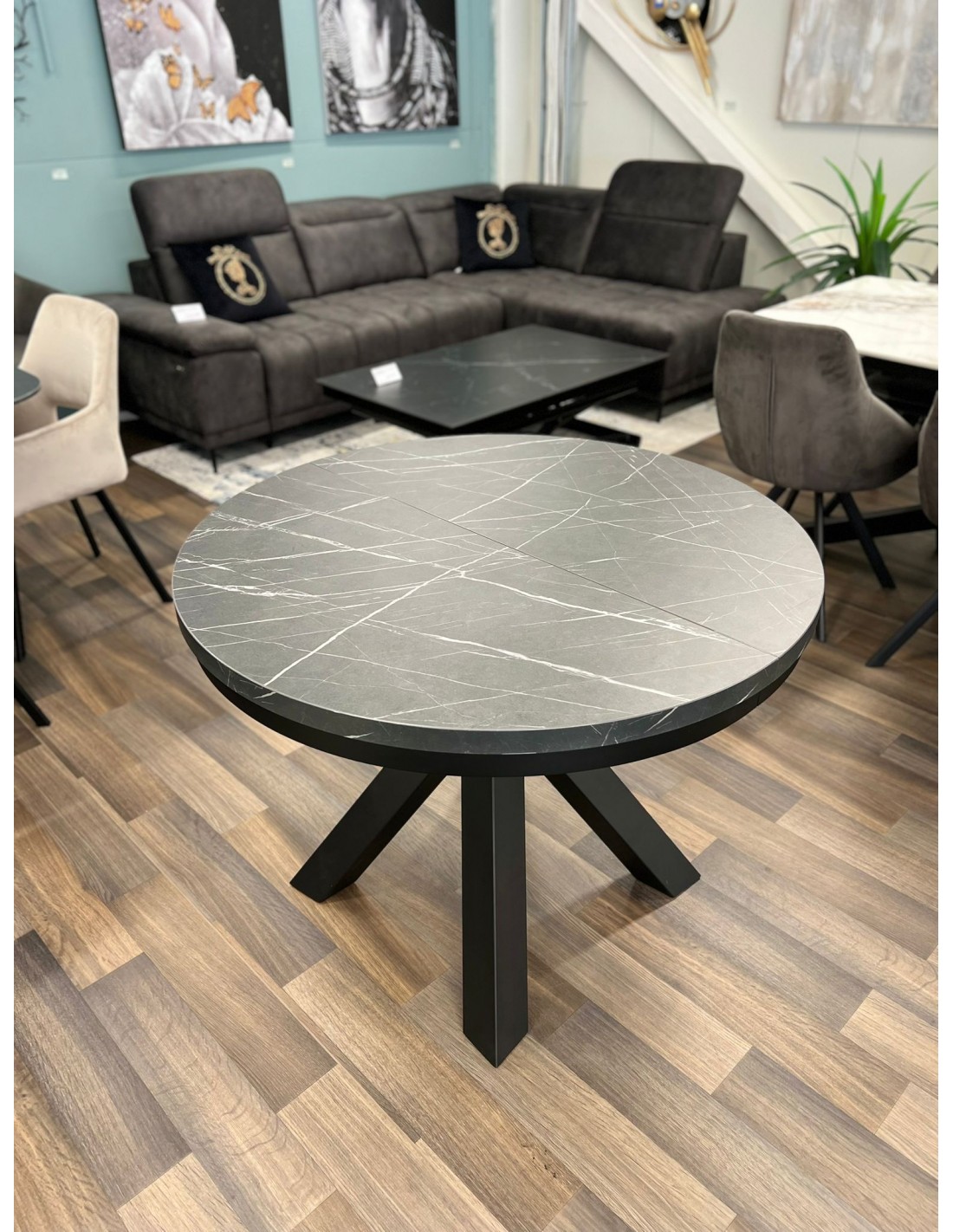 Раздвижной cтол VIGUS Ø120(196)x76h black pietra