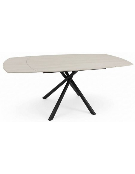 Раздвижной стол TORRETTA — простой и элегантный в складывании: повернув среднюю часть, стол раскладывается в обе стороны. Размеры стола: от 120 до 179 см. Столешница светло-коричневого цвета с черными ножками придает интерьеру современный вид и создает уютное место для встреч.