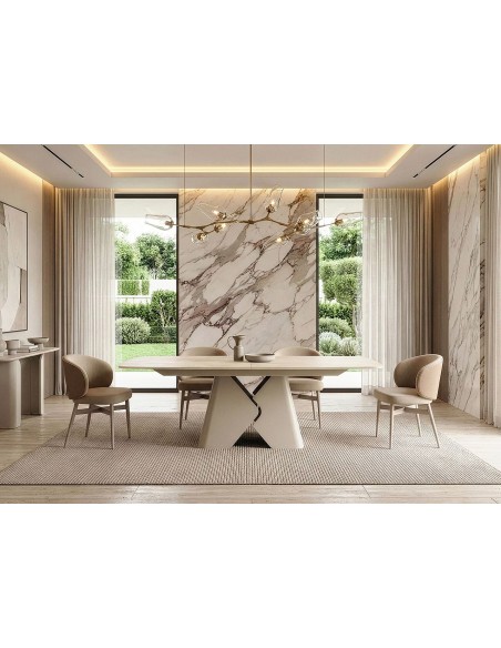 Сбалансированные пропорции и лаконичный дизайн позволяют легко вписать стол в различные интерьеры. Это практичное и функциональное решение для современной столовой или гостиной.