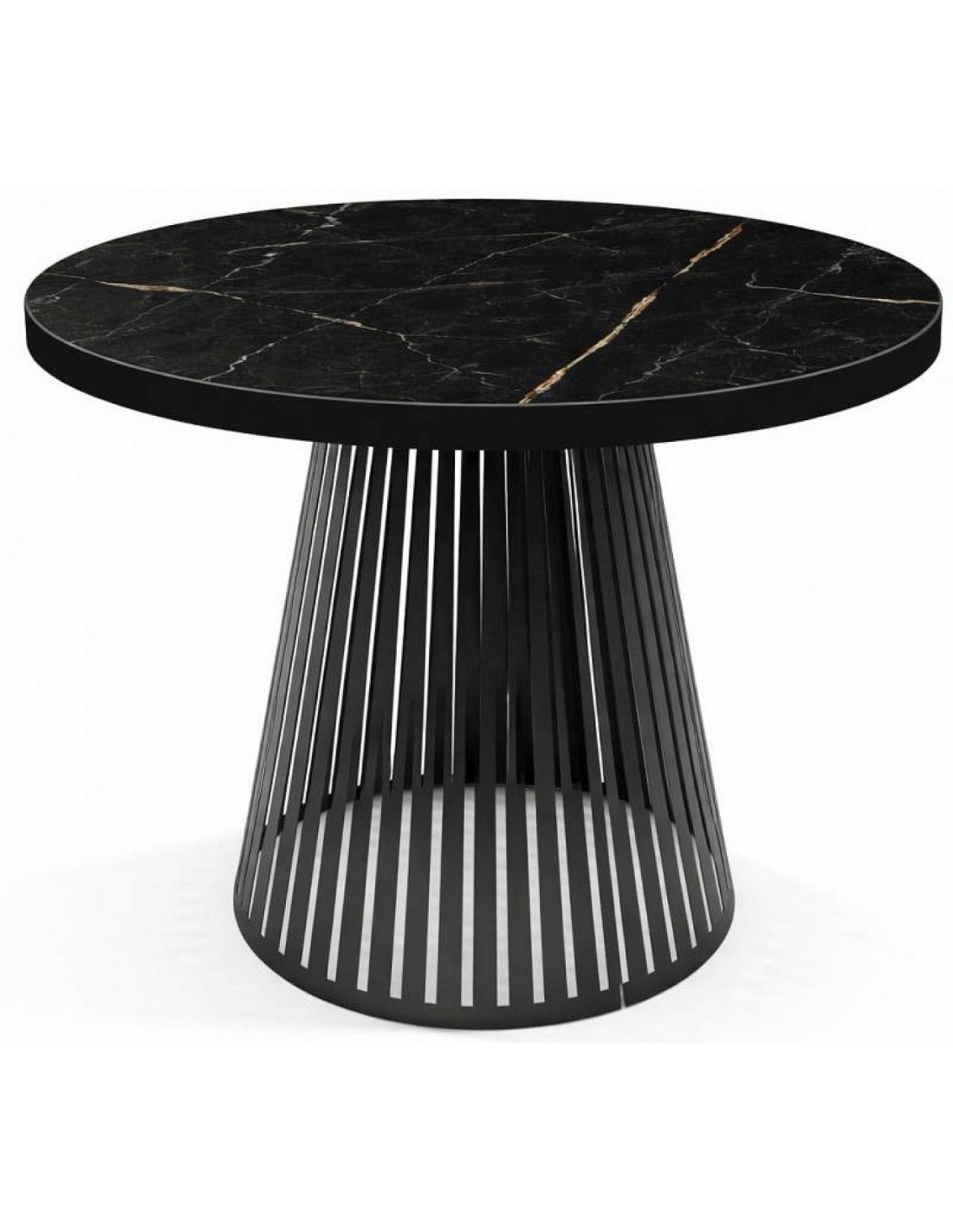 Обеденный стол NORE— это сочетание элегантности и современного дизайна, который прекрасно впишется как в домашний интерьер, так и в коммерческие помещения. Круглая столешница, удлиняющаяся на 76 см благодаря двум дополнительным вставкам по 38 см. Позволяет с комфортом разместить больше гостей. Ажурное конусообразное металлическое основание, покрытое порошковой краской, придает столу легкость и устойчивость. Столешница из шпона прочна и пригодна для ежедневного использования, ее толщина составляет 18 мм.