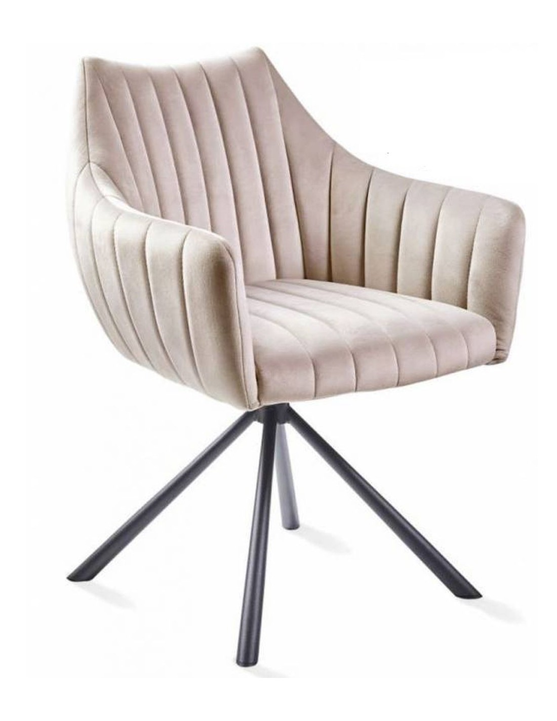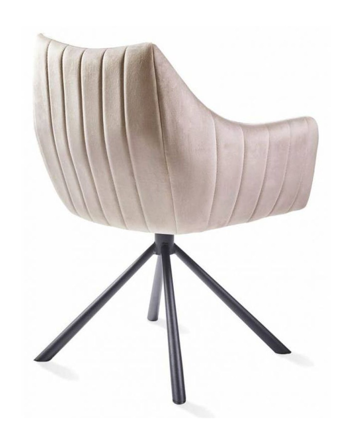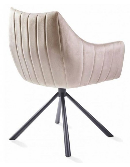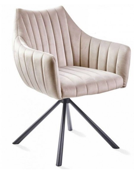 Kресло МИЛАН на черных металлических ножках, обтянутых велюровой тканью. Стул имеет подлокотники, а его верхняя часть вращается. Может использоваться как кресло для отдыха, письменный стол или обеденный стул.