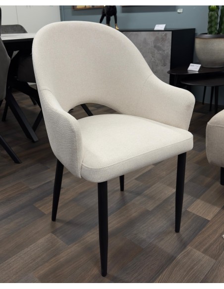 Стул обеденный - РОСАРИО. Сиденье покрыто гобеленом или какой-нибудь другой тканью, а ножки — черный металл или дерево. Идеально подойдет к любому интерьеру столовой, так как можно менять ткань, ее цвет и цвет ножек.