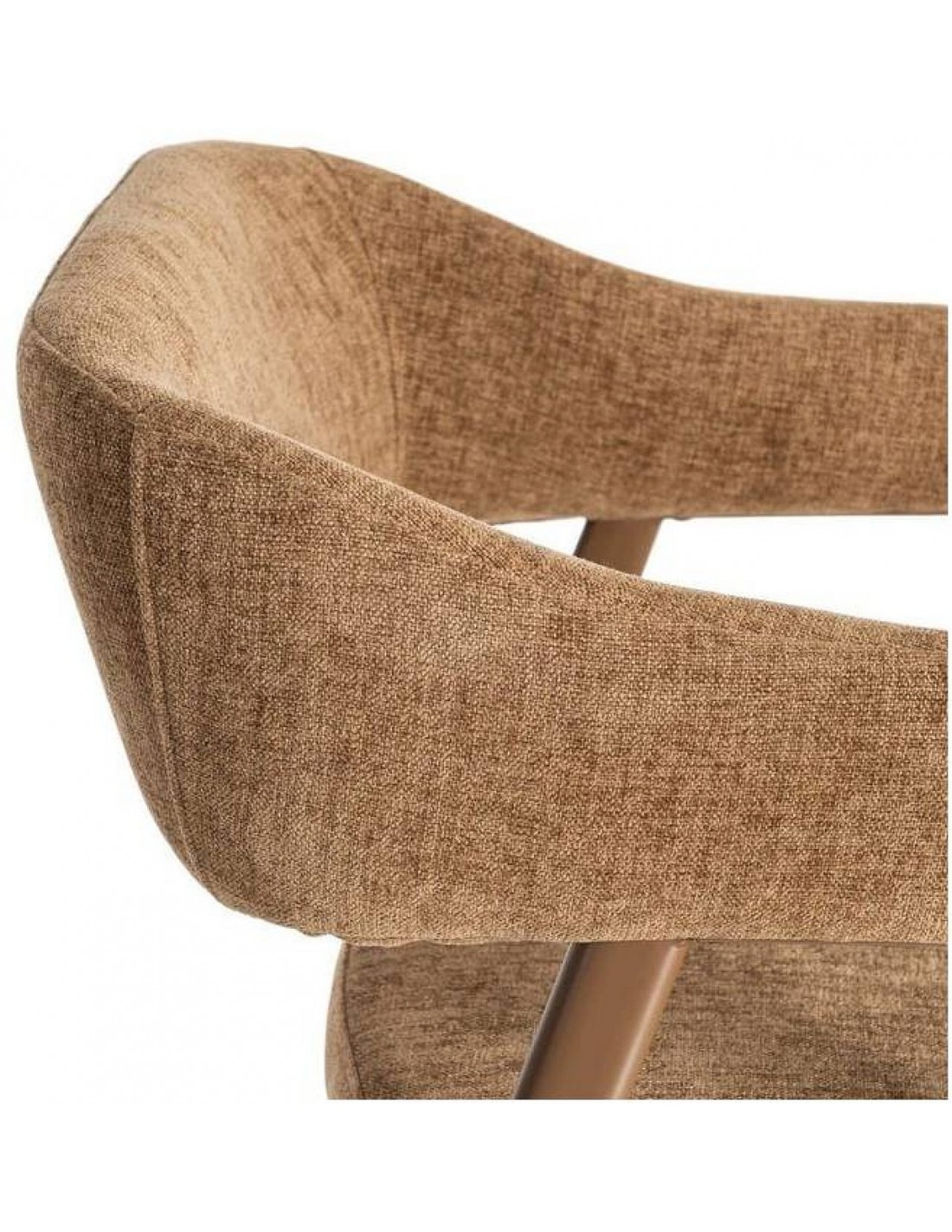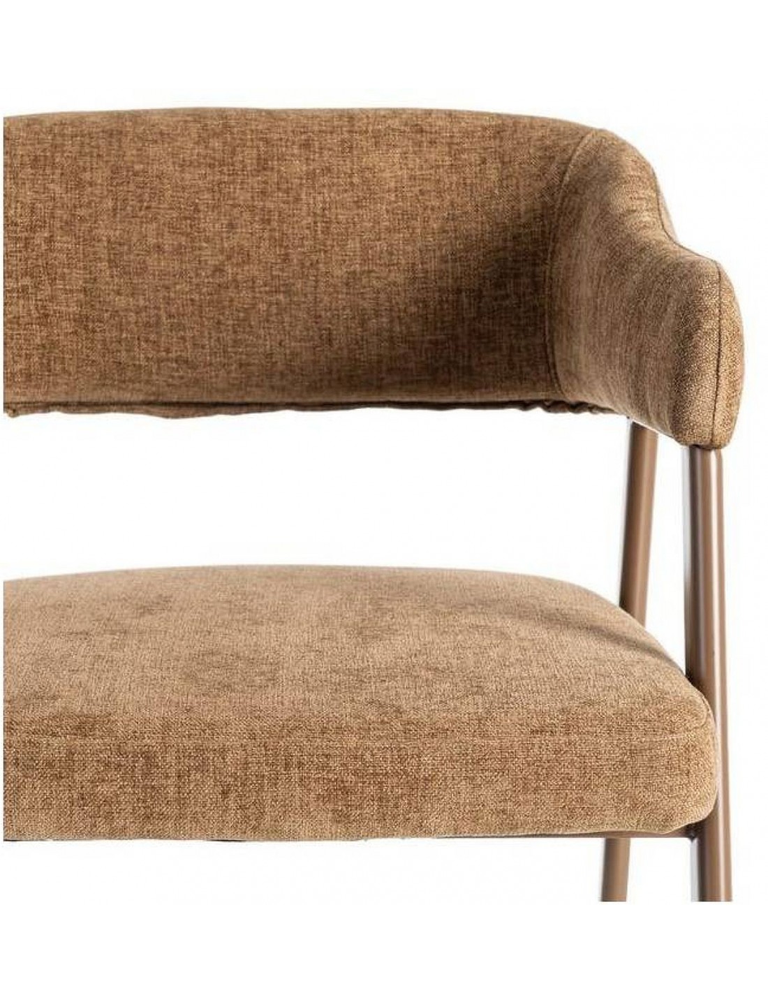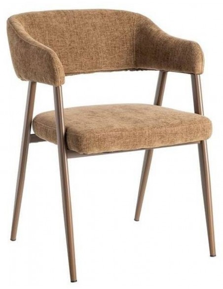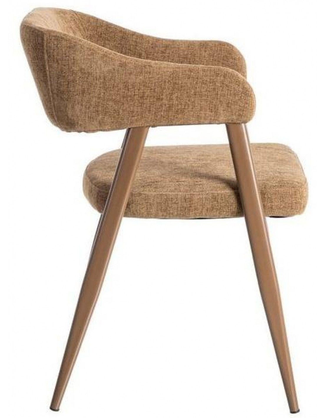 Коричневый тканевый стул с металлическими ножками, удобными подлокотниками и современным дизайном. Прочный, устойчивый и впишется в любой интерьер.