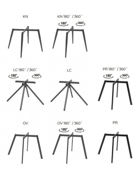 Вы можете заказать различные типы ножек для стула и выбрать их цвет. Некоторые модели ножек также имеют функцию вращения — на 180 градусов или 360 градусов.
