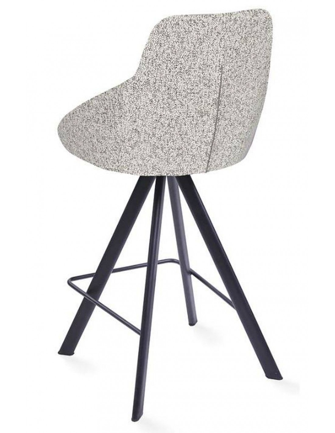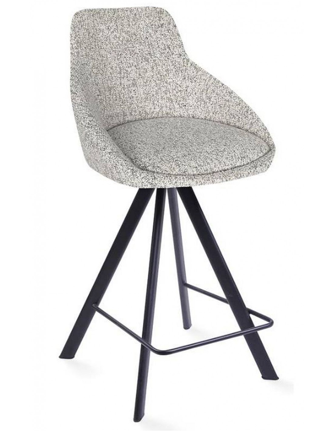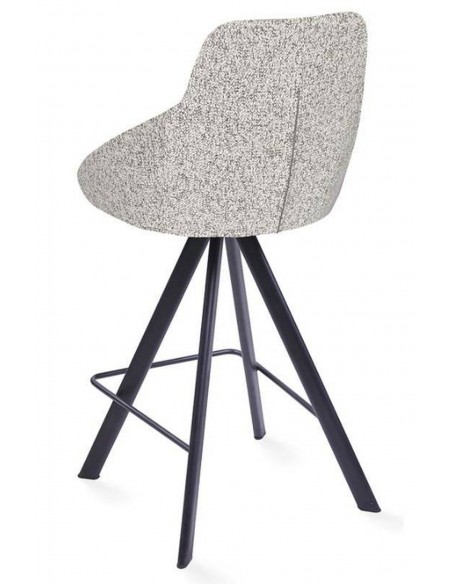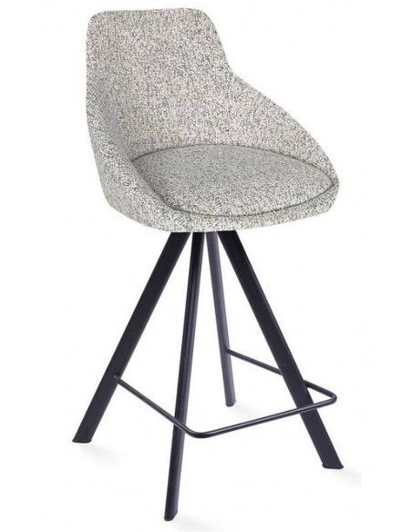 Полубарный стул ALUMNA с черными металлическими ножками и сиденьем, обитым гобеленом. Стул имеет функцию поворота на 180° с возвратным механизмом и удобными металлическими подставками для ног.