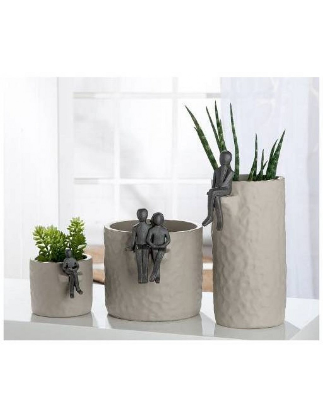 Цветочный горшок FIGURA — серо-коричневый цементный горшок с изображением человеческой фигуры. Функциональный и декоративный арт-объект.