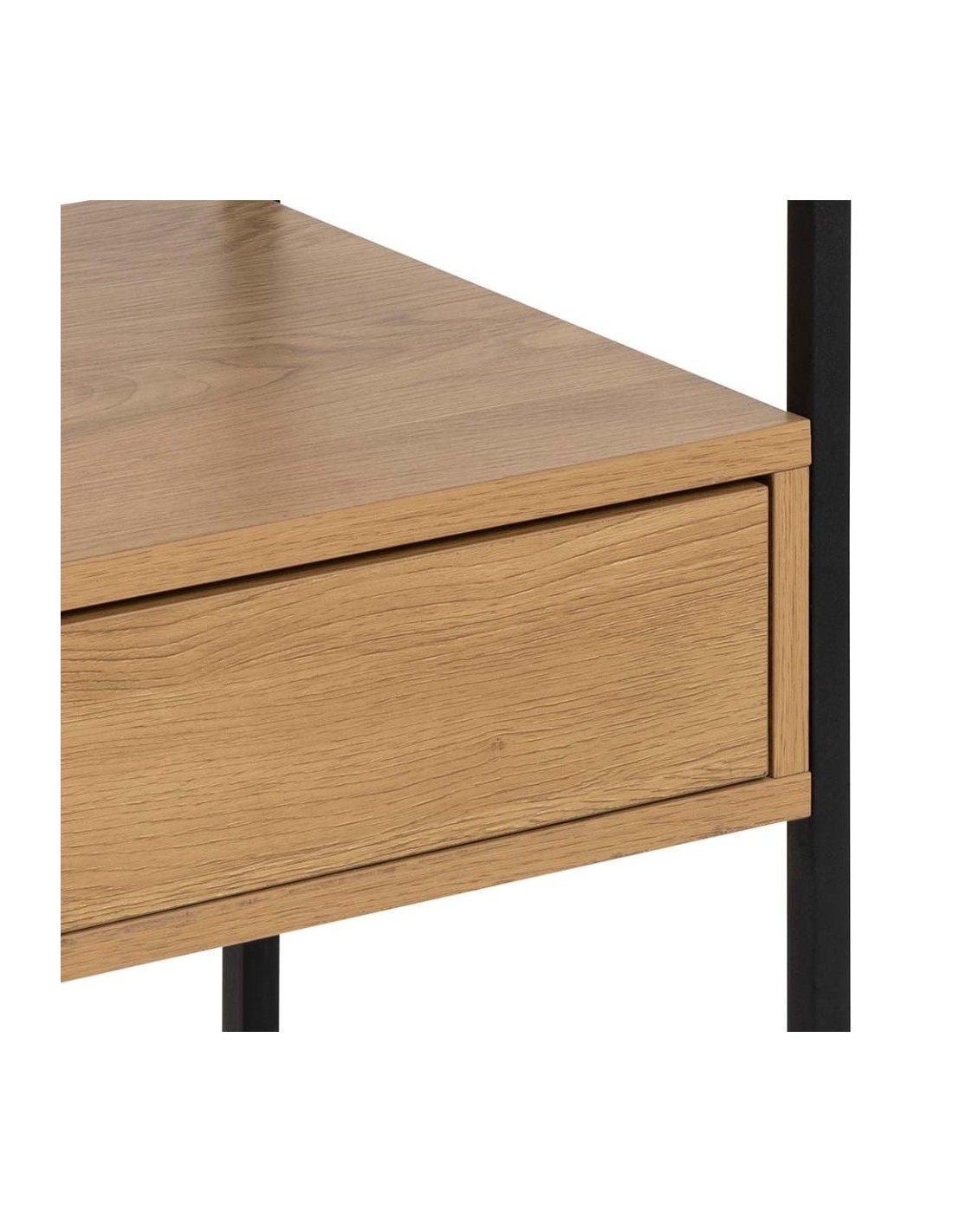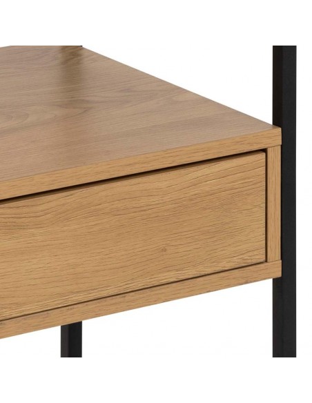 Современный дизайн прикроватной тумбочки сочетает в себе элегантность и функциональность. Столешница из закалённого дымчатого стекла выглядит современно и долговечна в ежедневном использовании. Прочный чёрный стальной каркас обеспечивает устойчивость конструкции, а меламиновое покрытие под дуб создаёт естественный и уютный вид. Компактный размер позволяет легко разместить тумбочку рядом с кроватью, а на её поверхности можно разместить лампу, книгу или личные вещи. Это практичный предмет мебели, который поможет поддерживать порядок и станет стильным акцентом в спальне.