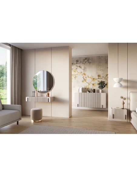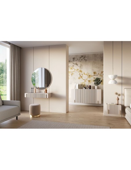 Красивая прикроватная тумбочка MALMI с ящиком для хранения различных вещей и мелочей. Стильная, изящная тумбочка с декоративными дверцами ящика.
