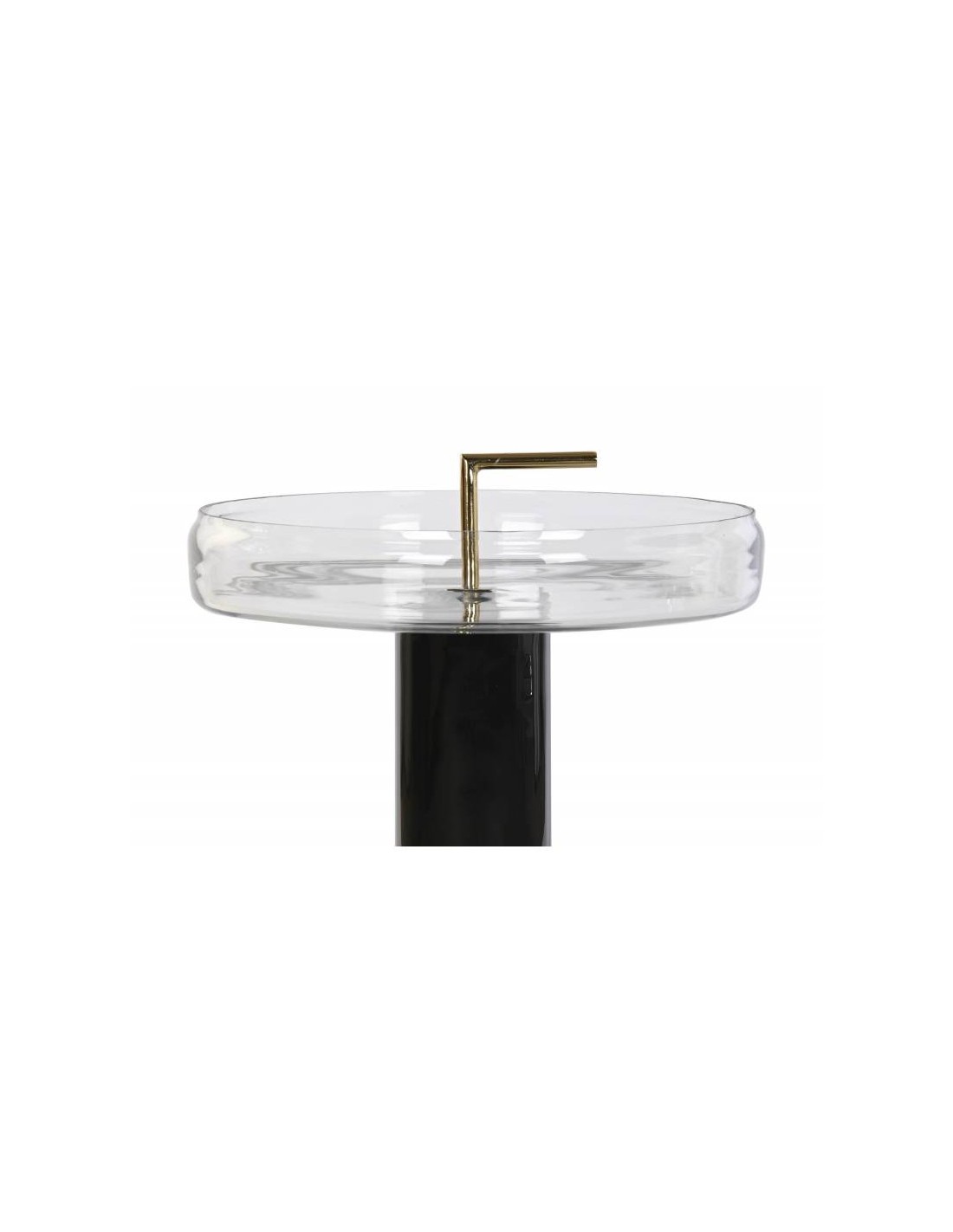 Приставной столик GLASS с удобной золотой ручкой для перемещения и утопленной стеклянной поверхностью.