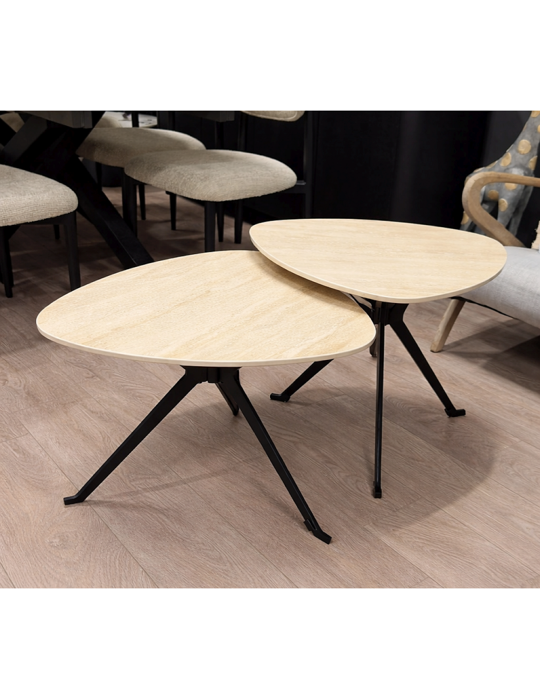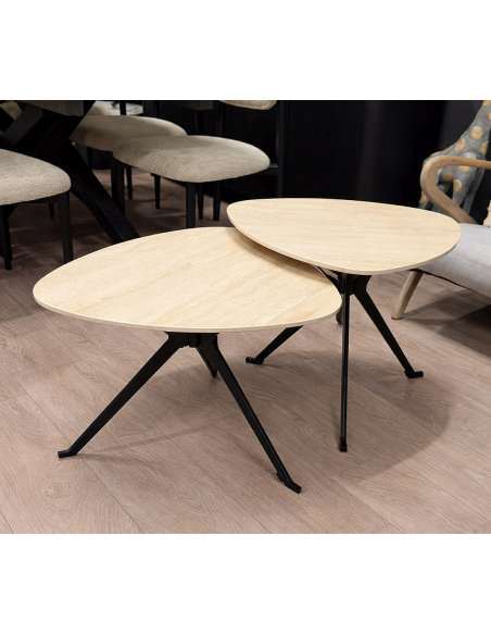 Приставной столик TRAVERTINO интересной формы, выполненный из искусственного камня травертин с черными металлическими ножками. Современный, элегантный и прочный.
