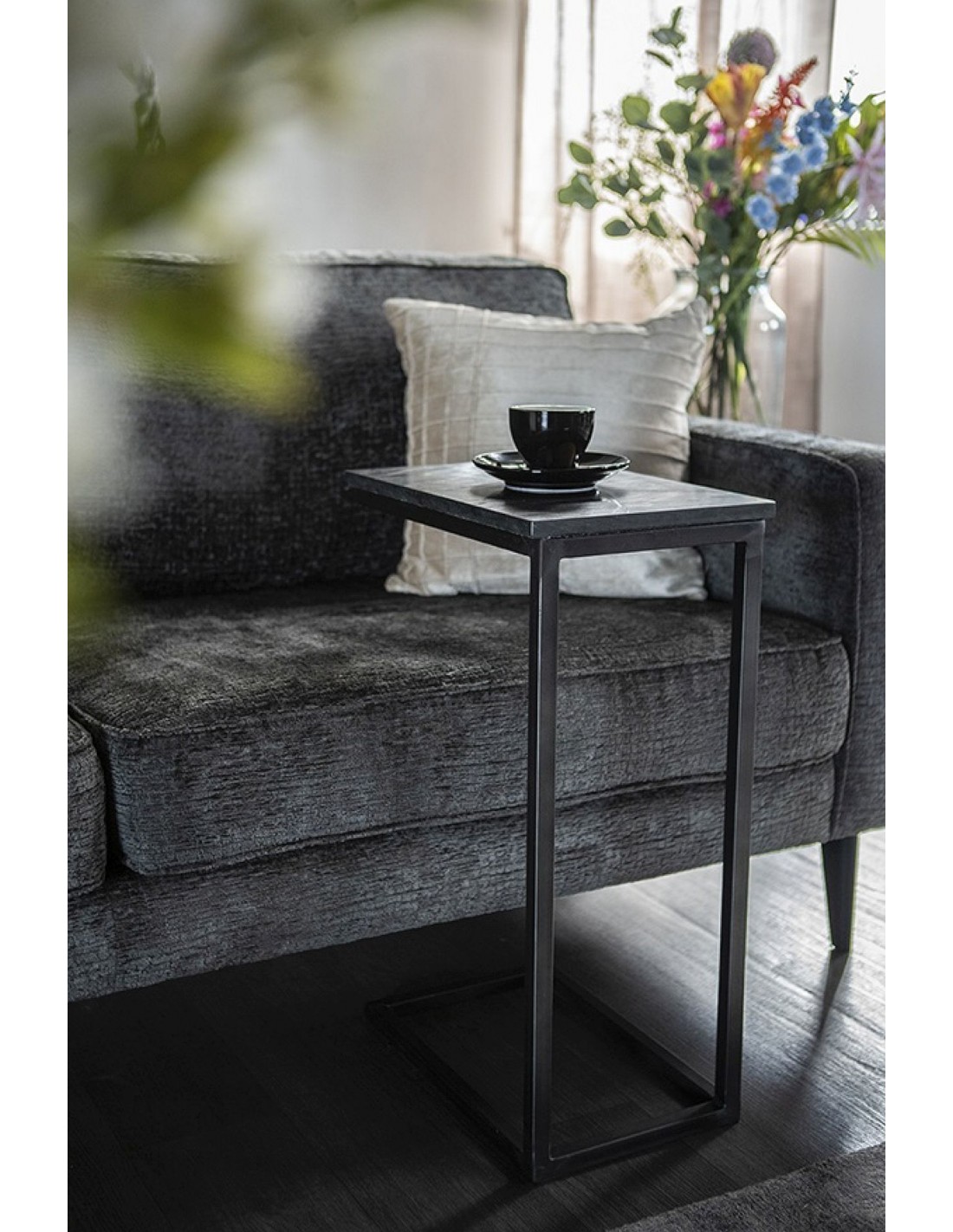 Столик EDGE с мраморной столешницей и металлическим каркасом – стильное и компактное решение для современной гостиной или спальни.