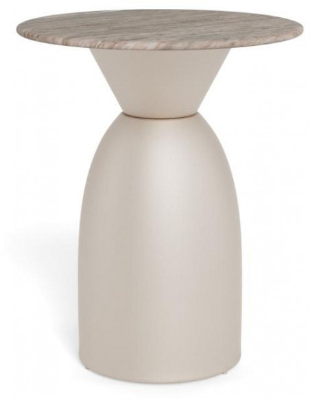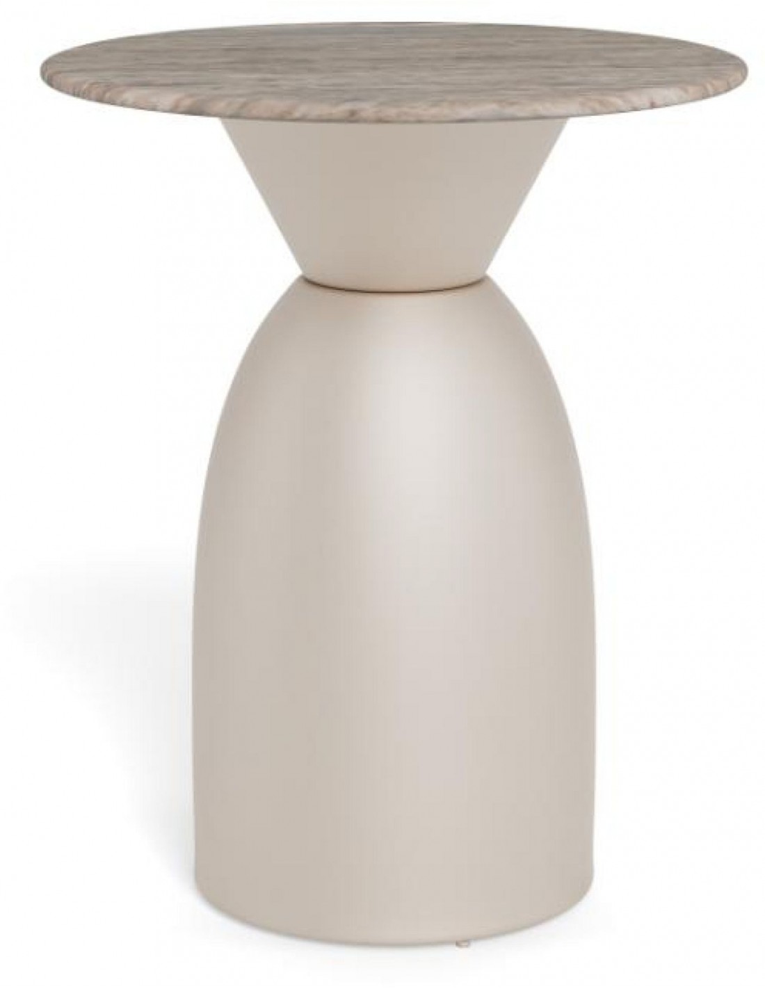 Прочное металлическое основание цвета кашемира обеспечивает устойчивость и современный вид, а круглая форма создает уютную атмосферу и комфорт для повседневного использования и встреч.