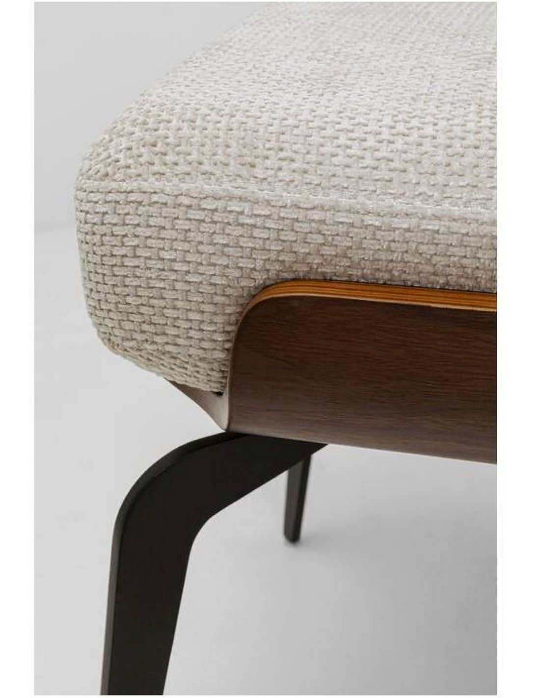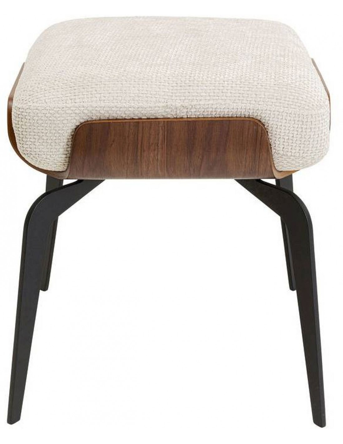 Компактный пуф MARC с легкой текстильной обивкой, черным металлическим каркасом и деталями из букового дерева, созданный для стильного и практичного использования.