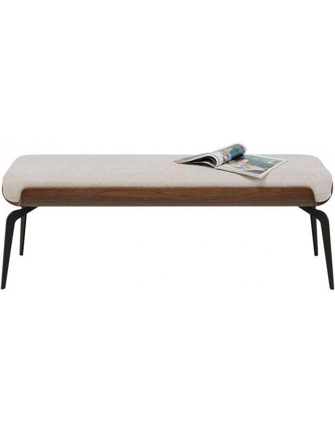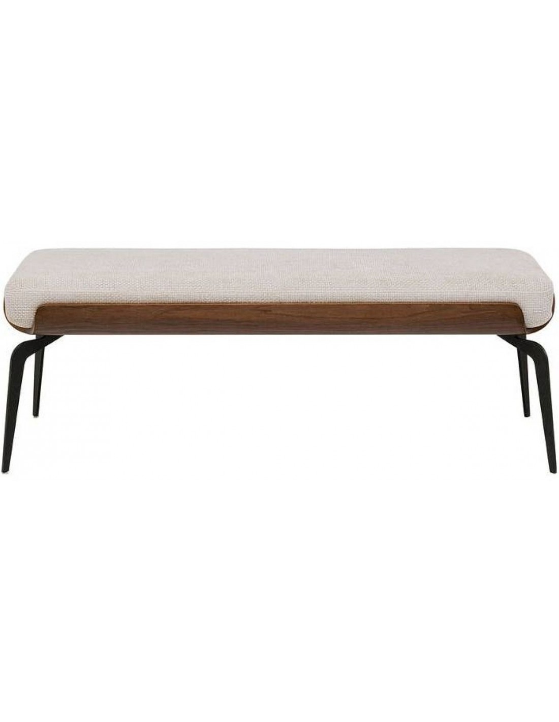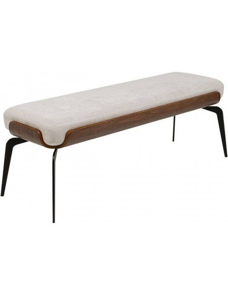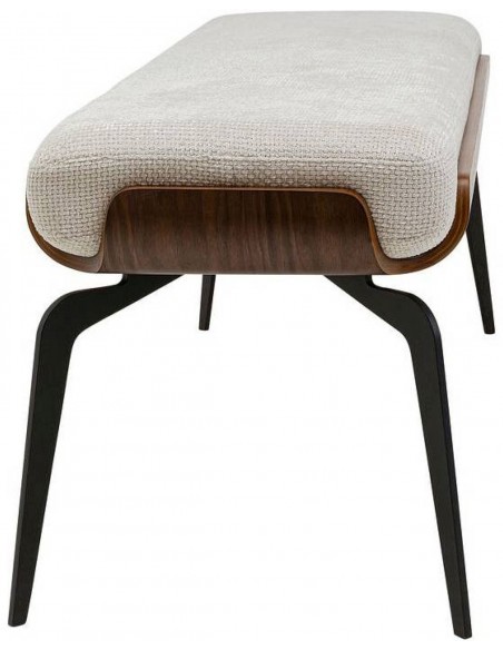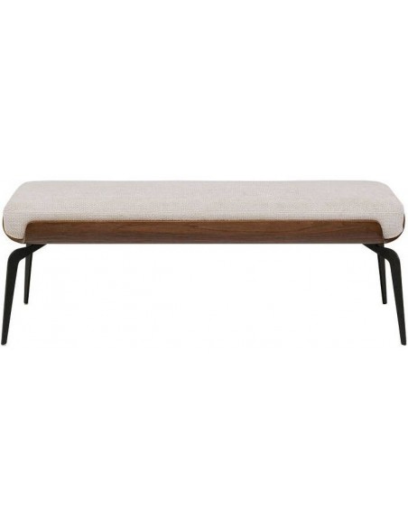 Компактный пуф MARC с легкой текстильной обивкой, черным металлическим каркасом и деталями из букового дерева, созданный для стильного и практичного использования.