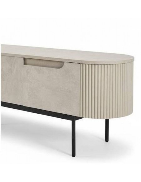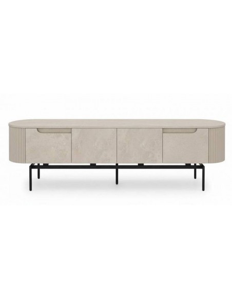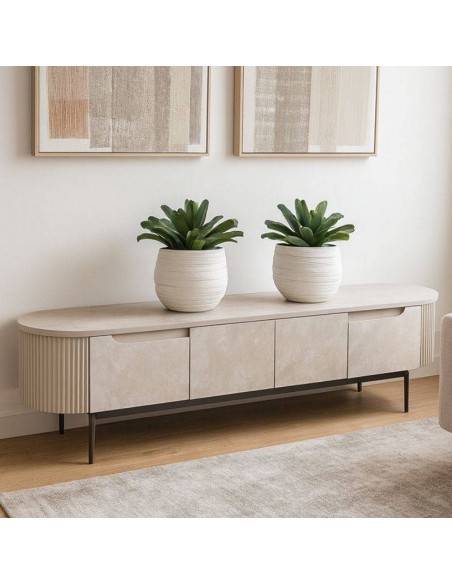 TEMPO – тумба под телевизор кремового цвета с закругленными краями и элегантными деталями.