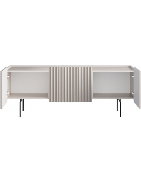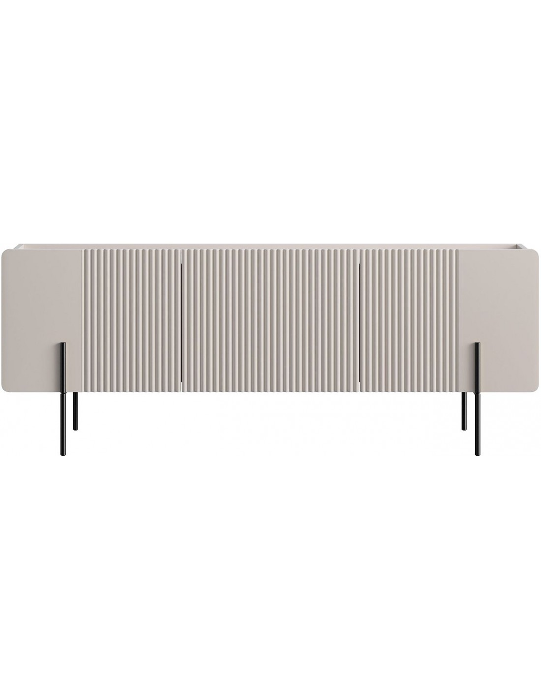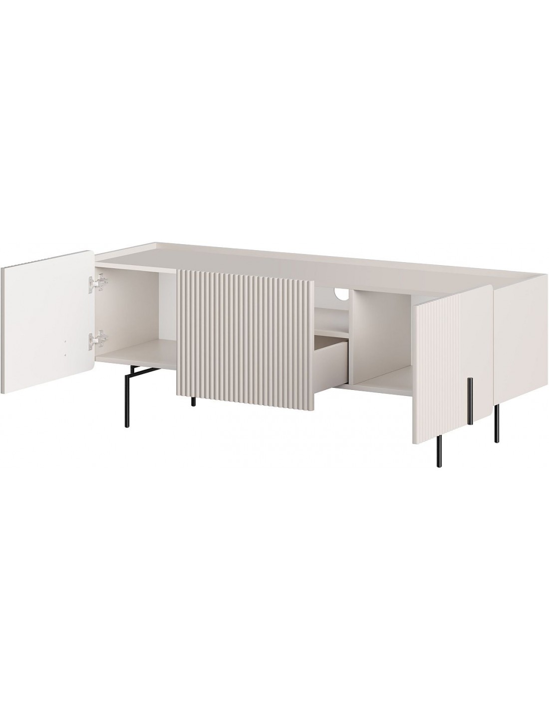 Izgatavots pēc Accanto grupas pasūtījuma (MB)Компактная тумба под телевизор MALMI с ребристым фасадом, металлическими ножками и удобным выдвижным ящиком — современный и функциональный выбор для гостиной.