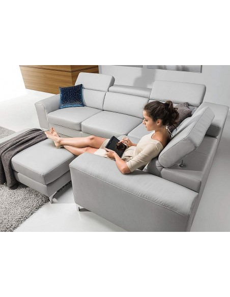 Удобный и стильный угловой диван современного дизайна AVONEGA. Доступны различные размеры, варианты сборки и выбор цвета. Правый или левый угол. Регулируемые подголовники. Диван имеет функцию сна и ящик для постельного белья.