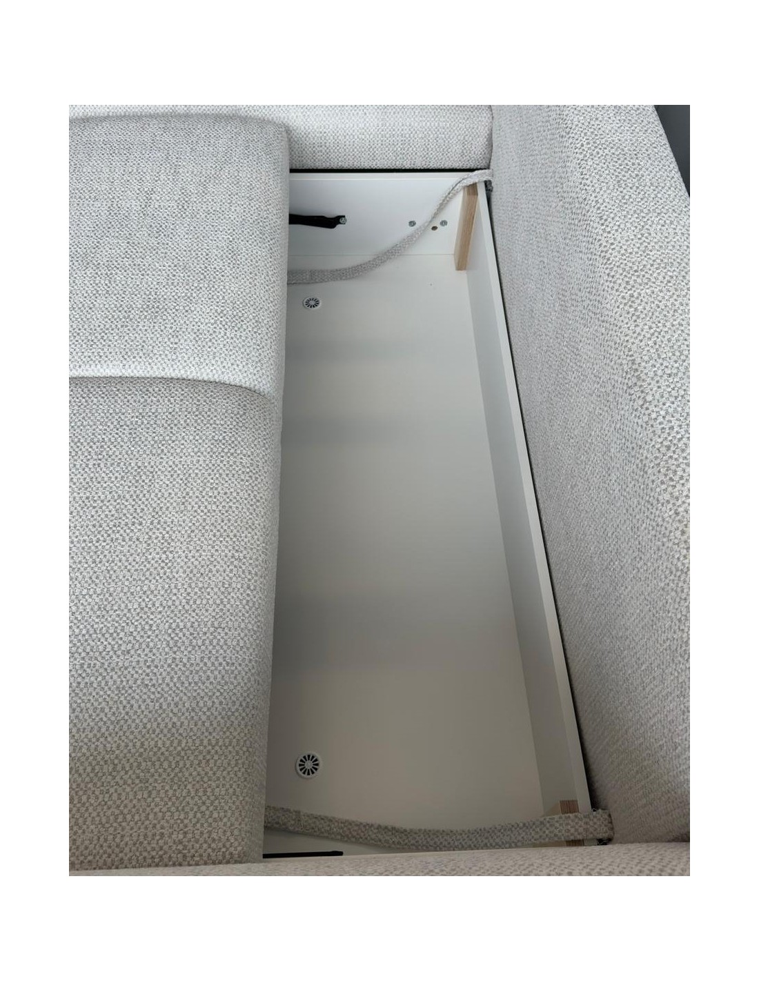 Угол комплектуется тремя большими подушками спинки (96 × 65 см) и двумя декоративными подушками (45 × 45 см), которые обеспечивают ещё больший комфорт. Высота ножек регулируется по желанию — 3 см или 6 см (стандартные пластиковые ножки 6 см).