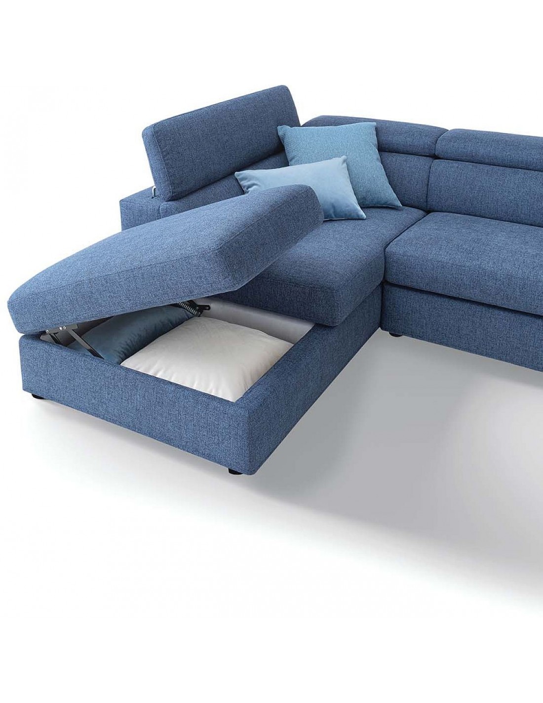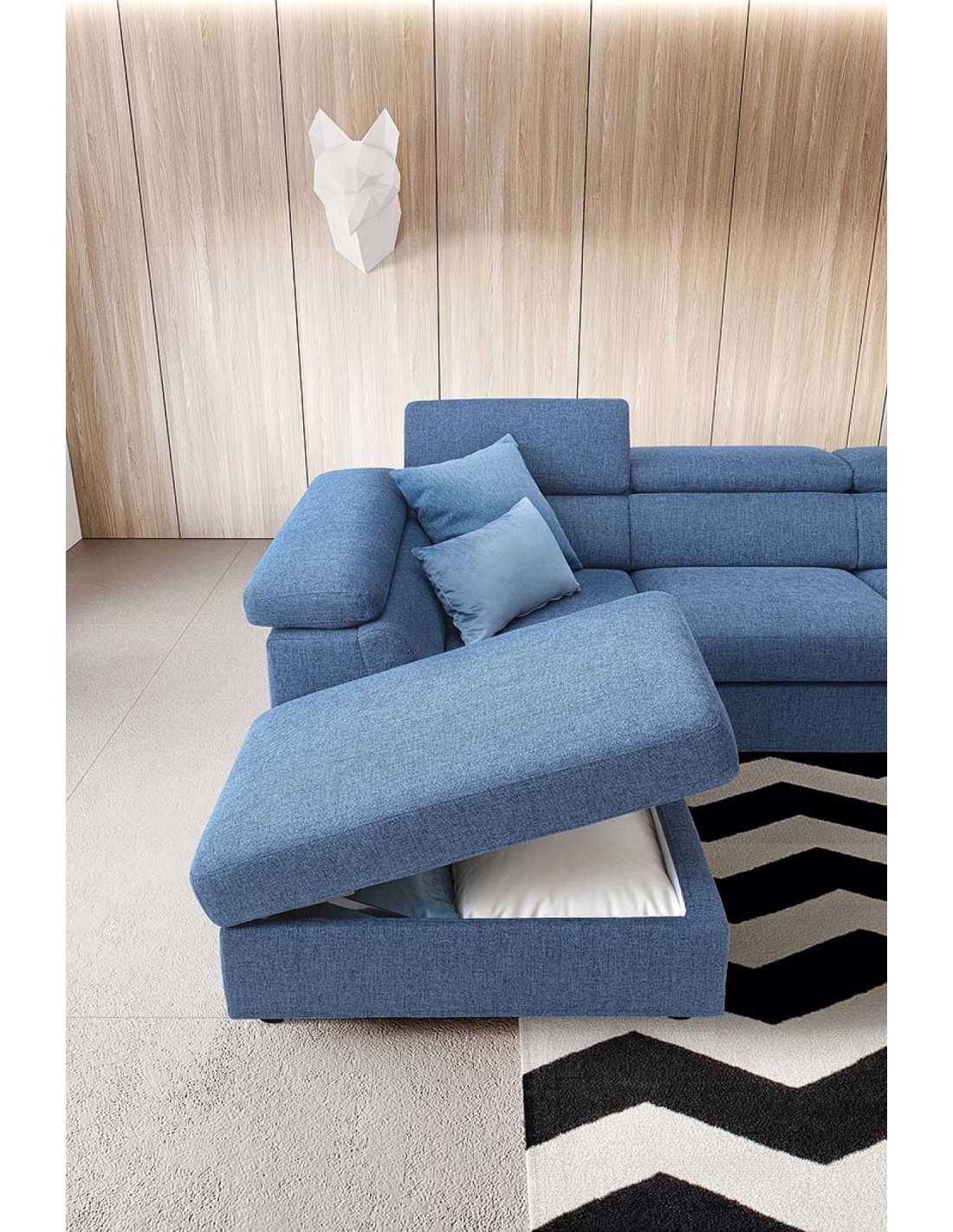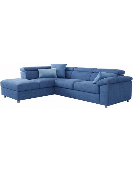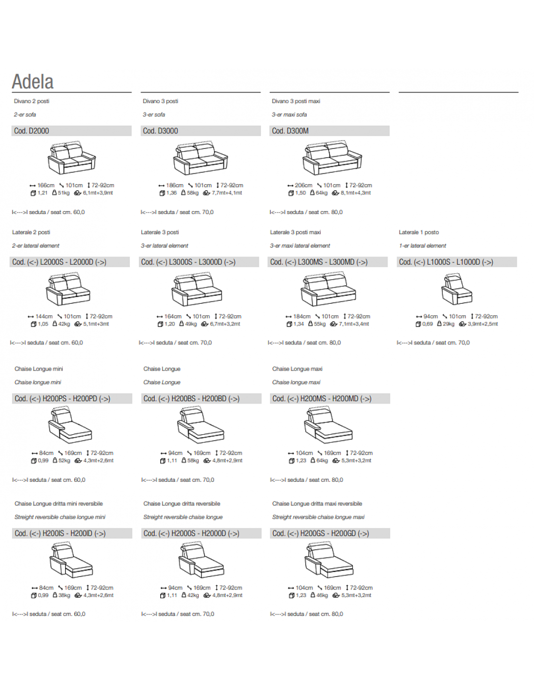ADELA — современный угловой диван. Полностью съёмная обивка, пригодная для стирки. Регулируемые подголовники. Может быть заказан с функцией спального места и ящиком для белья. Дополнительно можно заказать пуф.