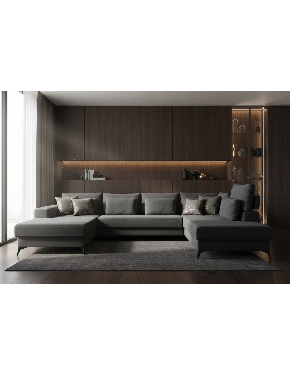 Удобный и стильный угловой диван современного дизайна DEDO. Угол дивана можно расположить как с правой, так и с левой стороны. Диван имеет регулируемые подголовники и свободно перемещаемых подушек. Диван имеет бельевой ящик и выдвижную функцию.
