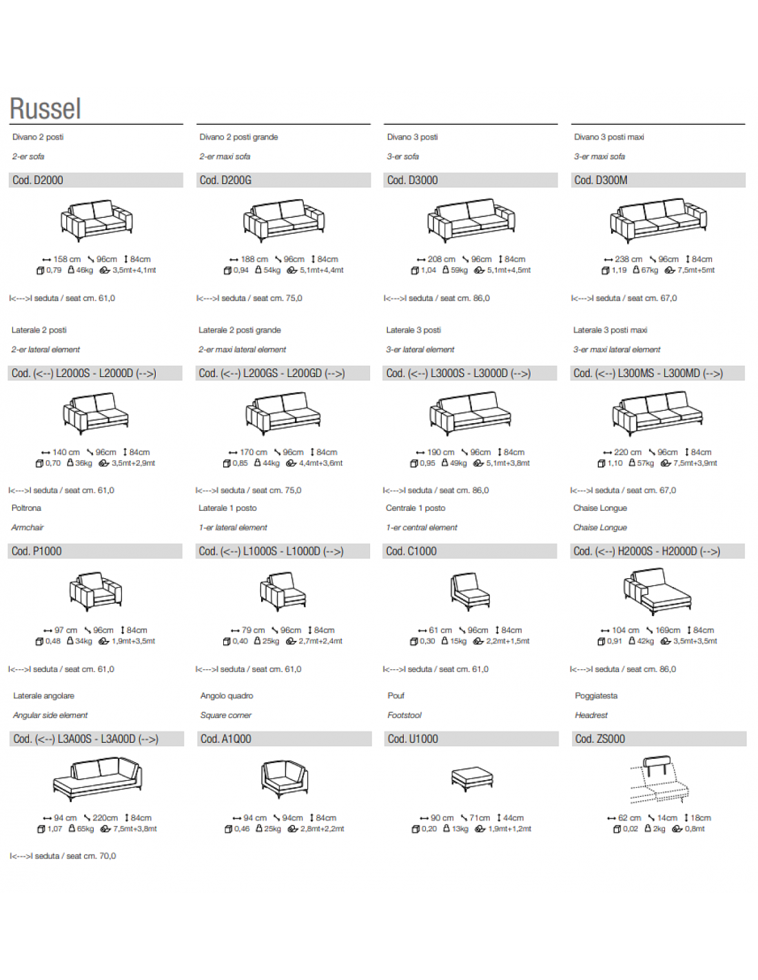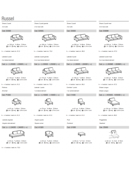 RUSSEL — современный итальянский диван. Чехлы на подушках, спинке и сиденье полностью снимаются. Функция выдвижения отсутствует.