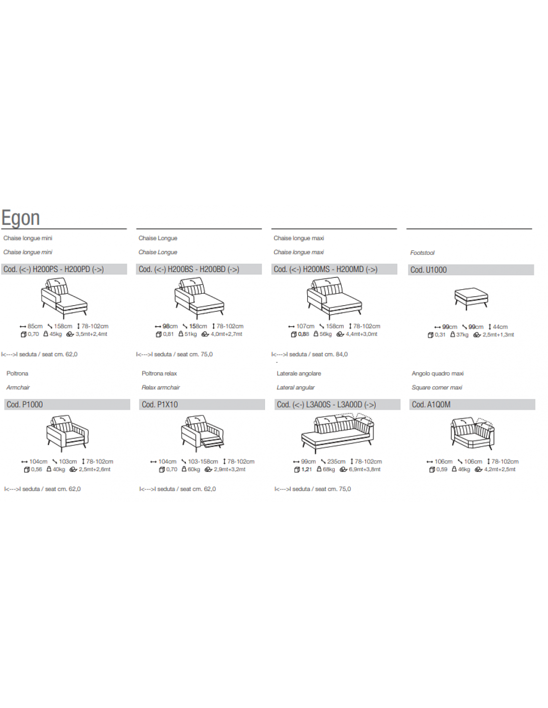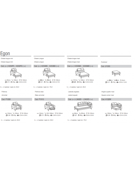 EGON — современный итальянский угловой диван. Чехлы на подушках, спинке и сиденье полностью снимаются. Функция выдвижения отсутствует.