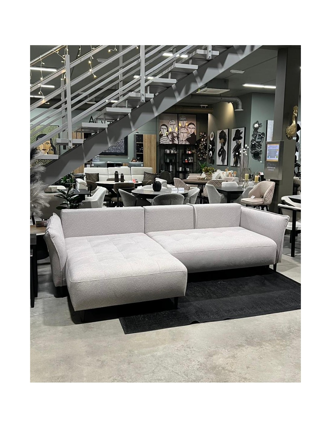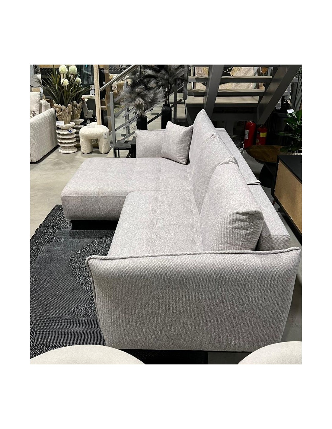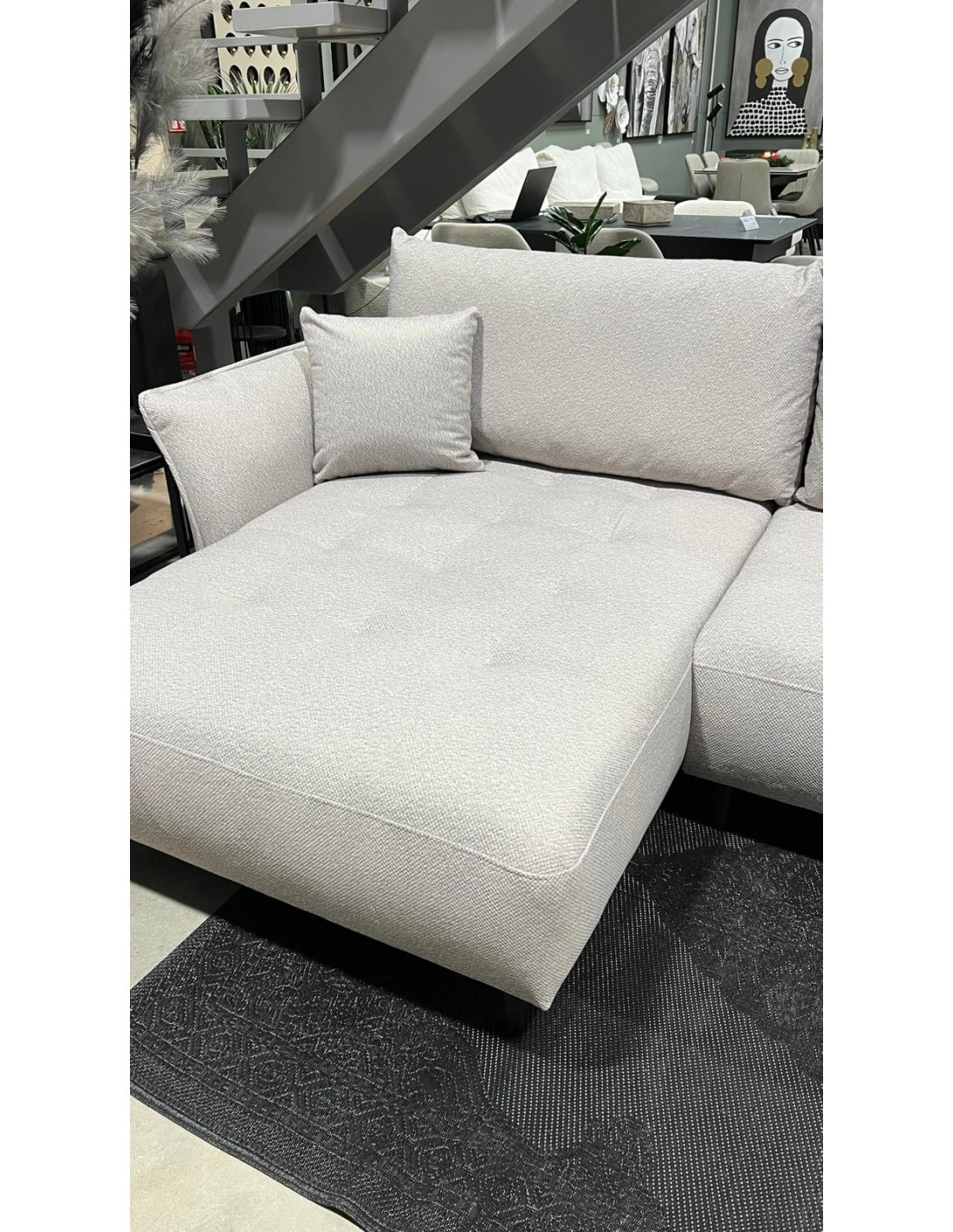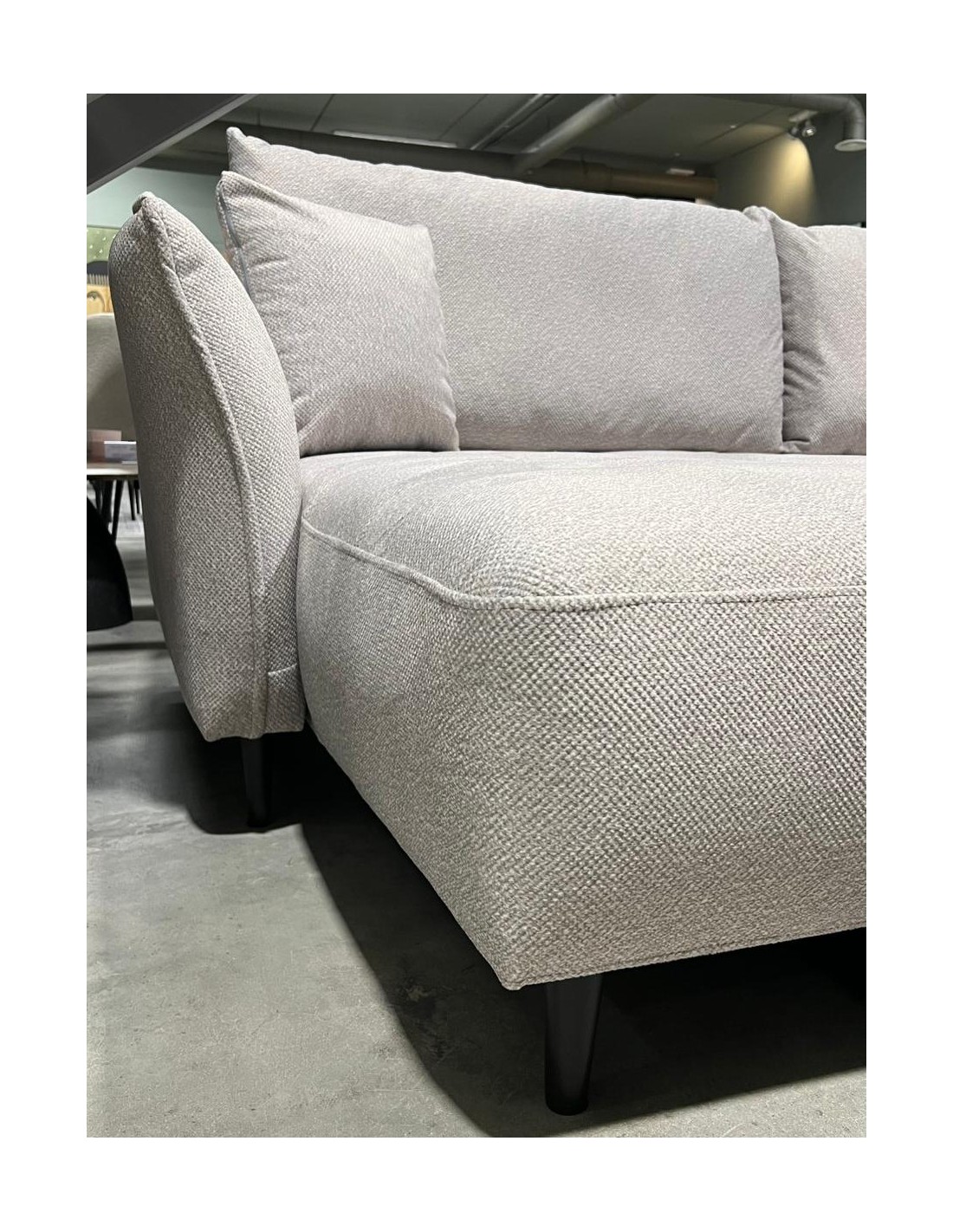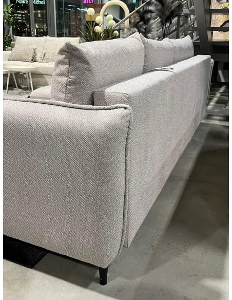 Модель углового дивана LARI я зона. Мягкий уголок имеет высокие черные металлические ножки. Большим преимуществом этого уголка является то, что его можно разместить и в центре комнаты, задняя часть обтянута тканью.