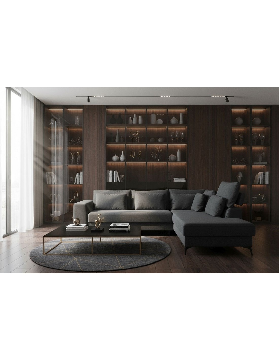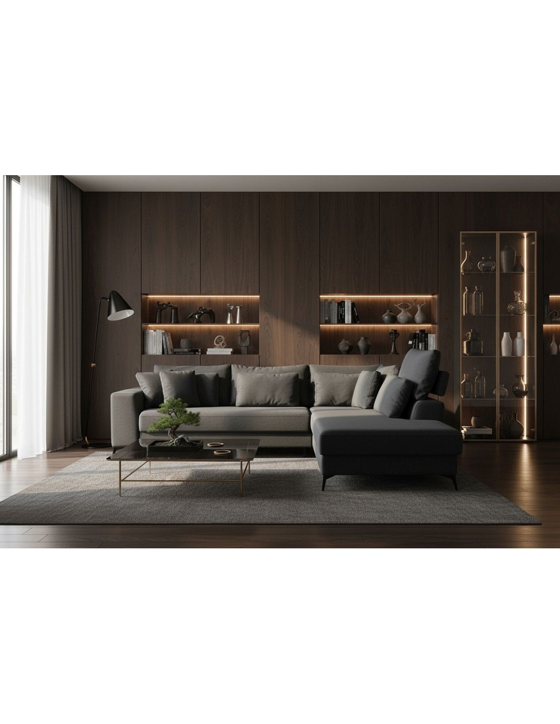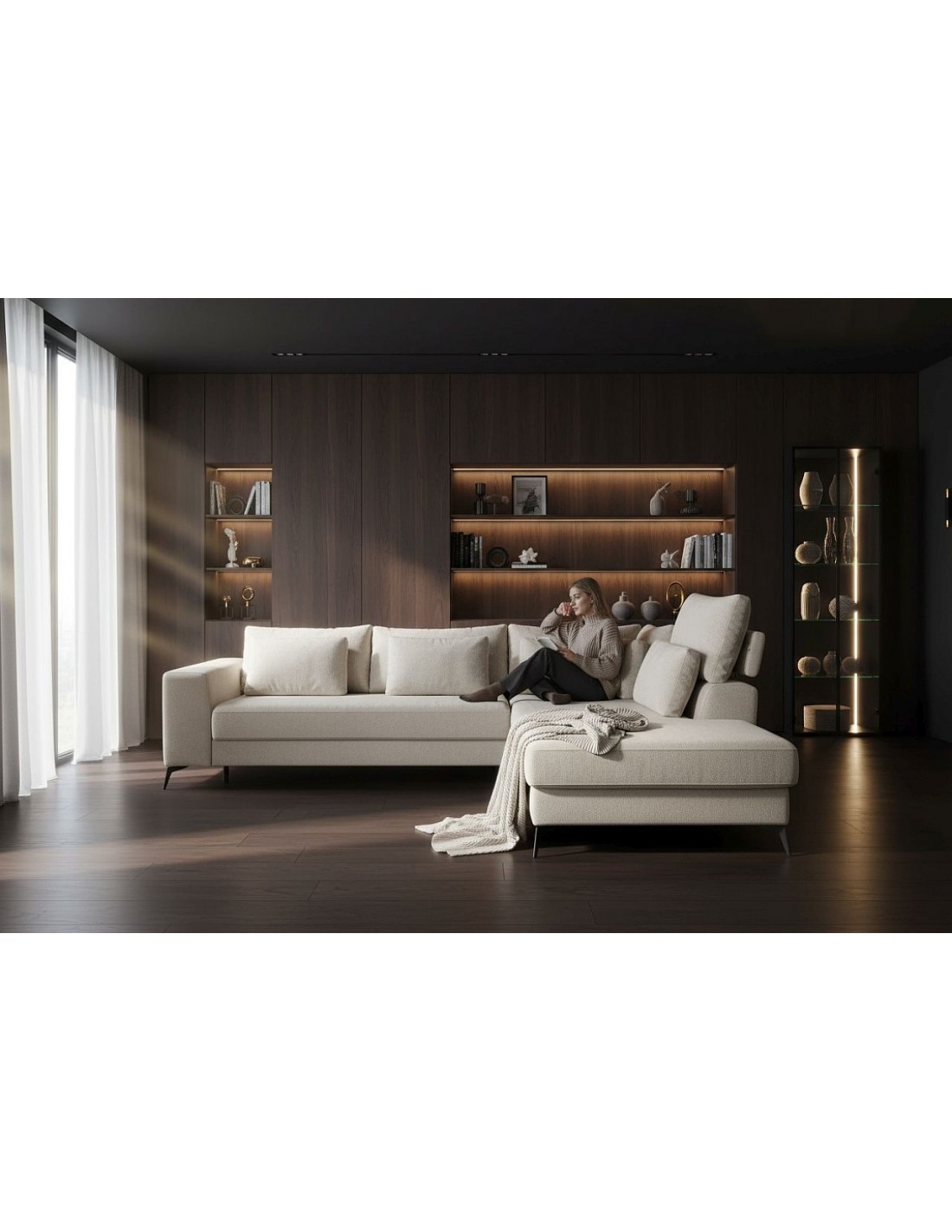 Удобный и стильный угловой диван современного дизайна DEDO. Угол дивана можно расположить как с правой, так и с левой стороны. Диван имеет регулируемые подголовники и 6 свободно перемещаемых подушек. Диван имеет бельевой ящик и выдвижную функцию. Спальная зона 150х220см.