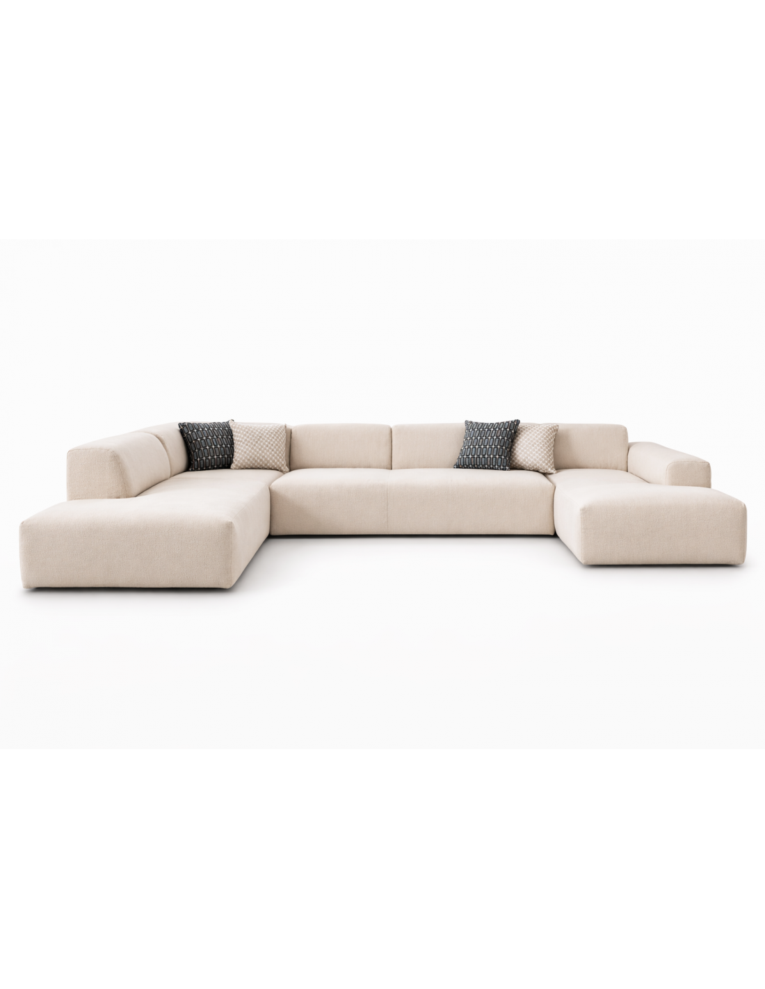 Модульный диван SUEZ сочетает в себе современный дизайн и повседневную функциональность. Четкие линии и просторное сиденье делают его стильным центральным элементом гостиной. Модульная конструкция позволяет адаптировать размер и конфигурацию под разные помещения. SUEZ легко трансформируется в удобную кровать, что делает его идеальным для приема гостей. Диван также оснащен практичным ящиком для белья, где можно удобно хранить одеяла, подушки или постельное белье, поддерживая порядок и эстетику в комнате.