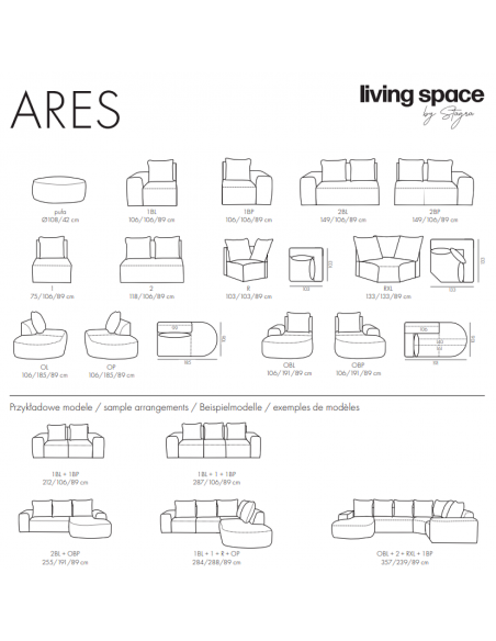 ARES — это модульный диван с мягкими, округлыми формами, придающими интерьеру современный и уютный вид. Модульная система позволяет легко адаптировать расположение дивана к различным помещениям.