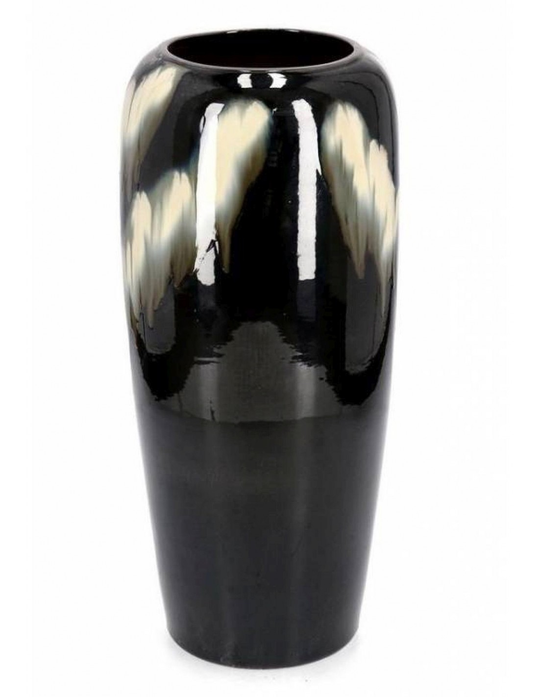 Ваза ручной работы из глазурованной терракоты MELANGE черного цвета с акцентами под белый, коричневый и зеленый мрамор подходит для использования на открытом воздухе. Каждая ваза уникальна.